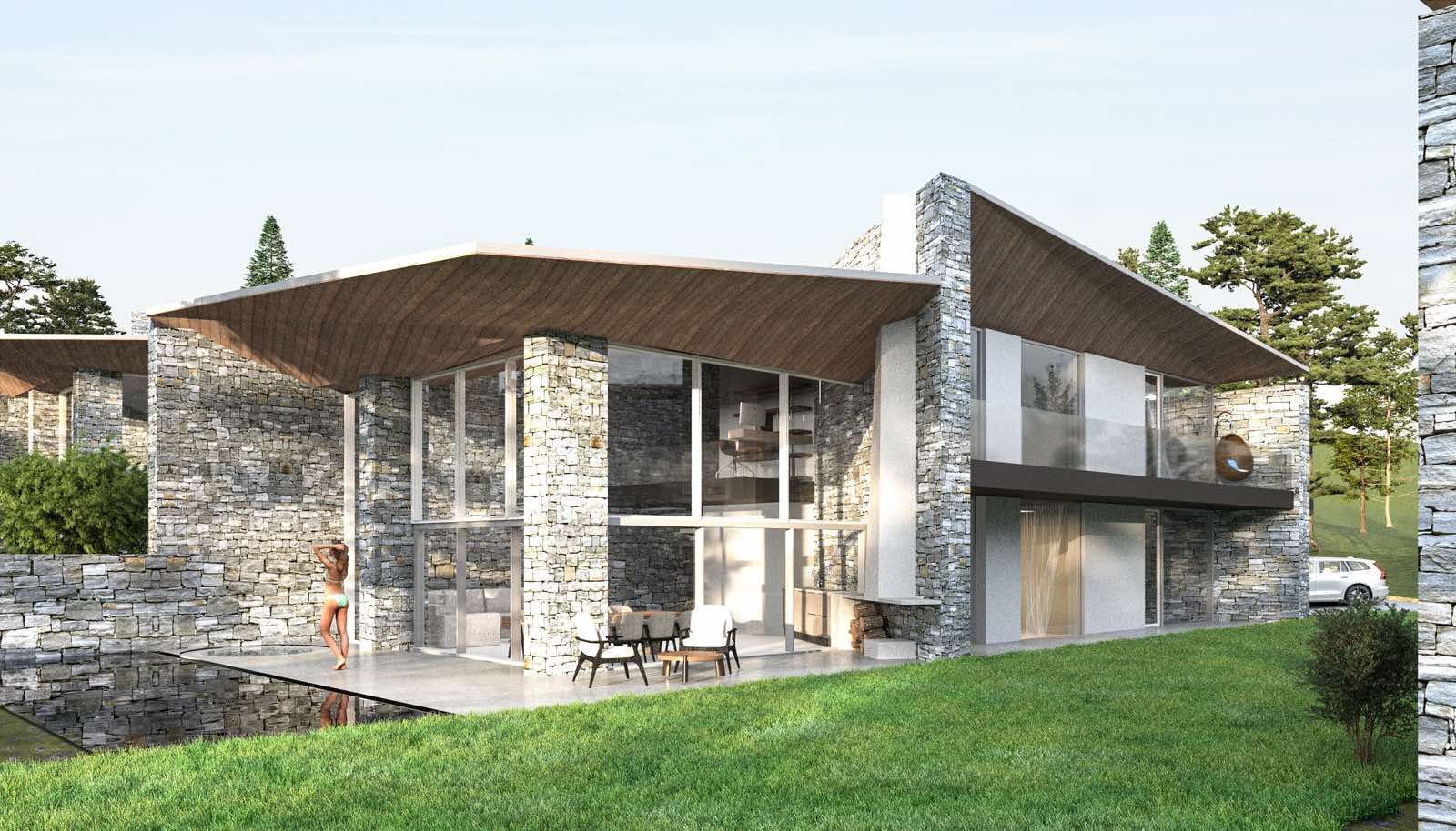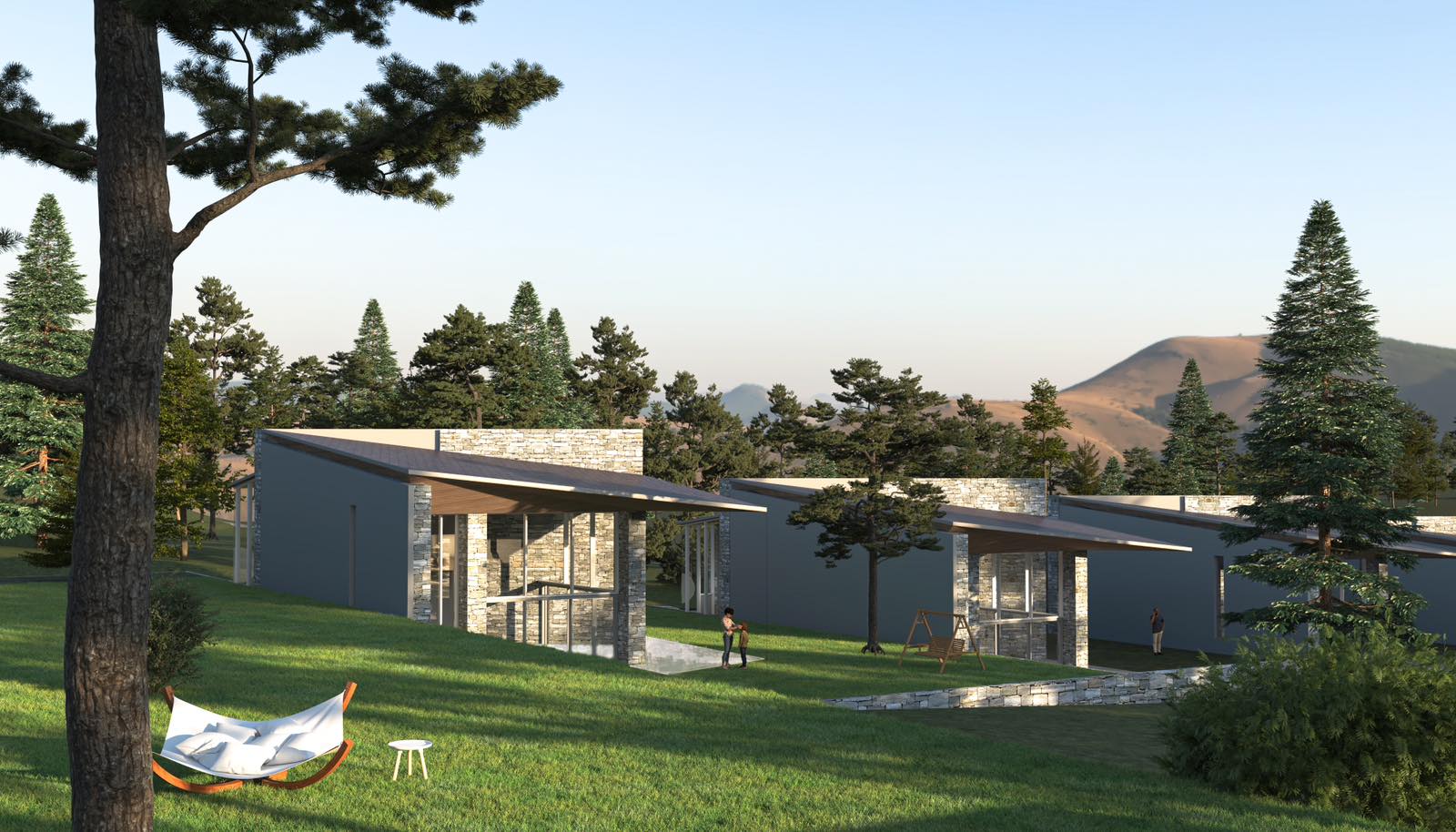 Архитектурата на къщите е вдъхновена от природата, съчетавайки естетика и функционалност. Каменните фасади, светлите тонове и южното изложение създават усещане за топлина, простор и естествена светлина. Вътрешното разпределение на имотите е проектирано иновативно, за максимален комфорт и удобство на собствениците и ползвателите.